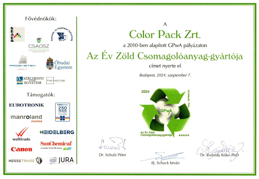Újra megnyertük Az Év Zöld Nyomdája Díjat 2024